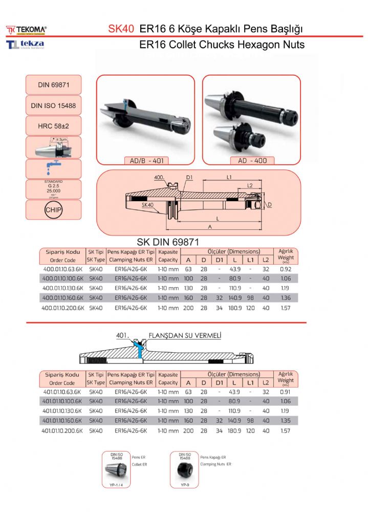 SK40 ER16 6 Köşe K.Pens Başlığı