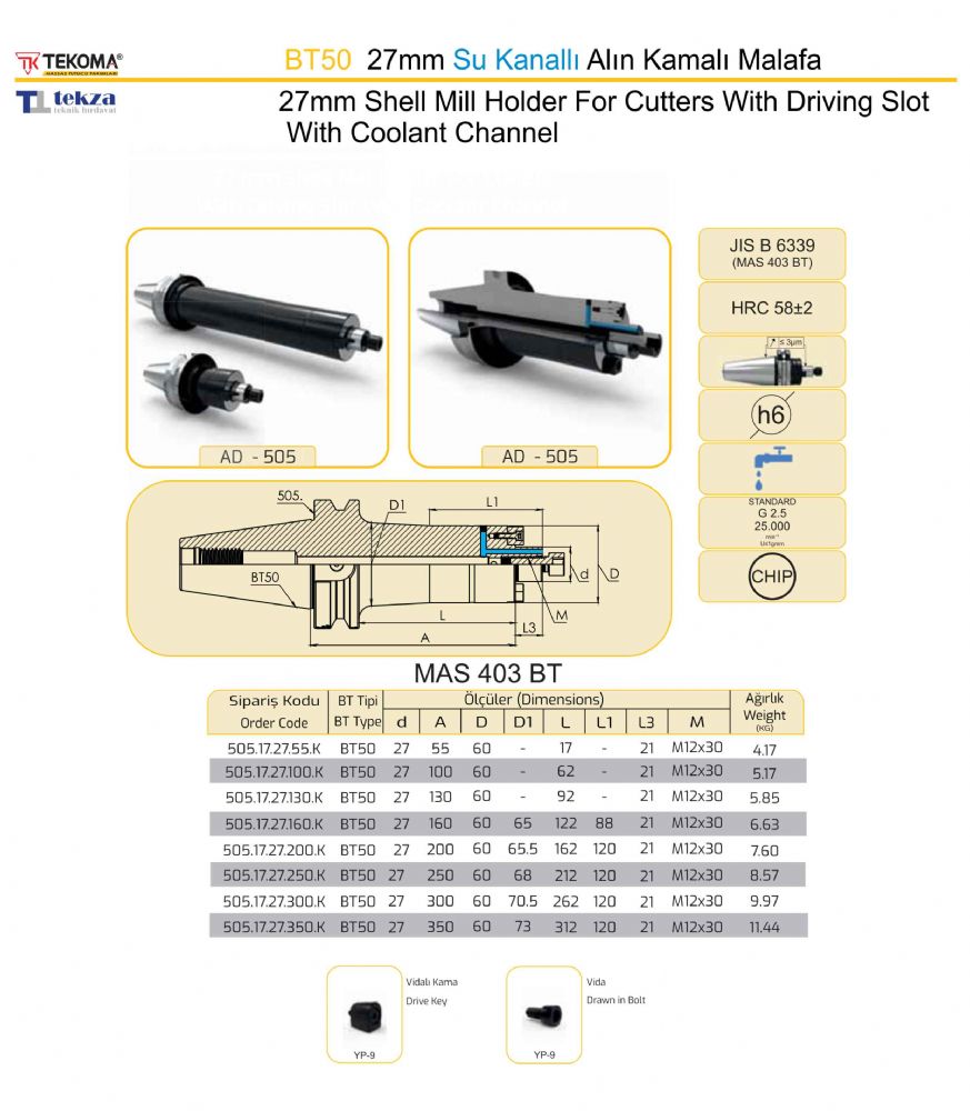 BT50 27mm Su Kanallı Alın Kamalı Malafa