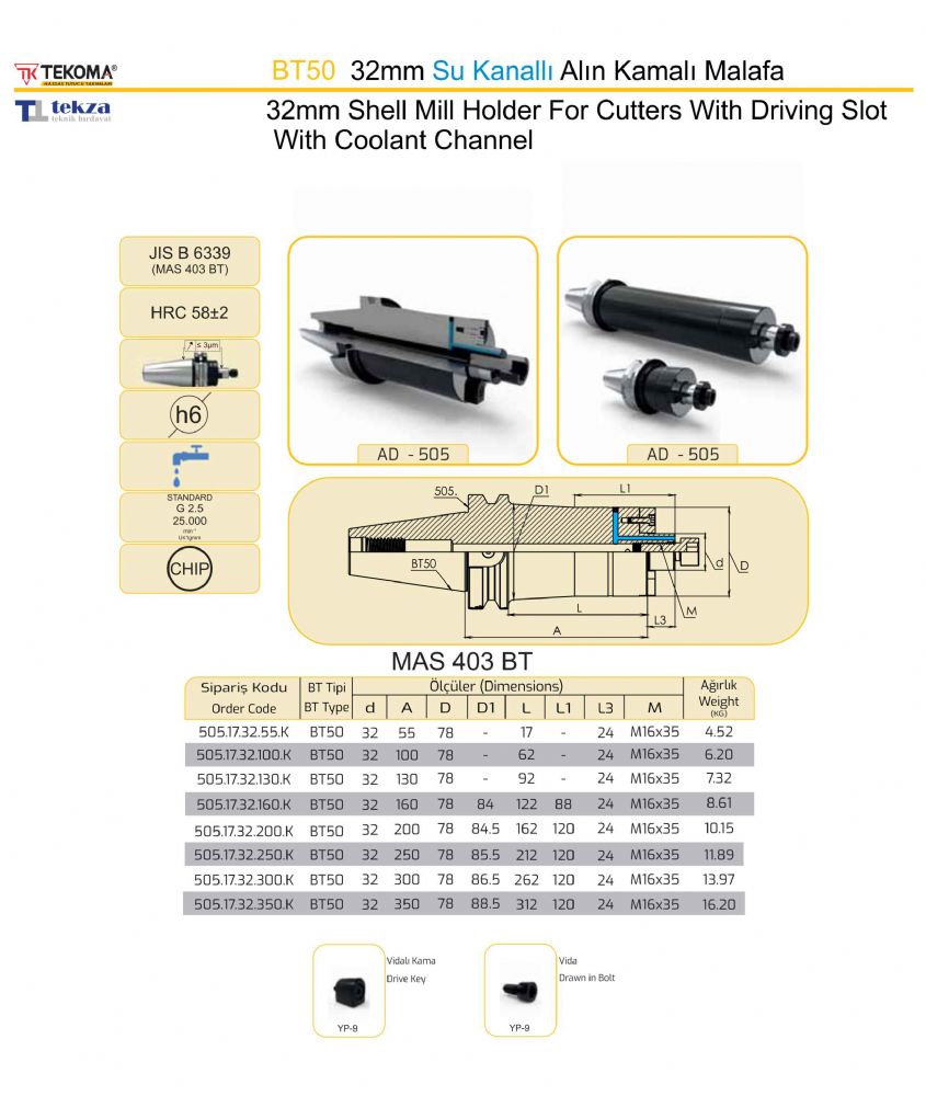 BT50 32mm Su Kanallı Alın Kamalı Malafa