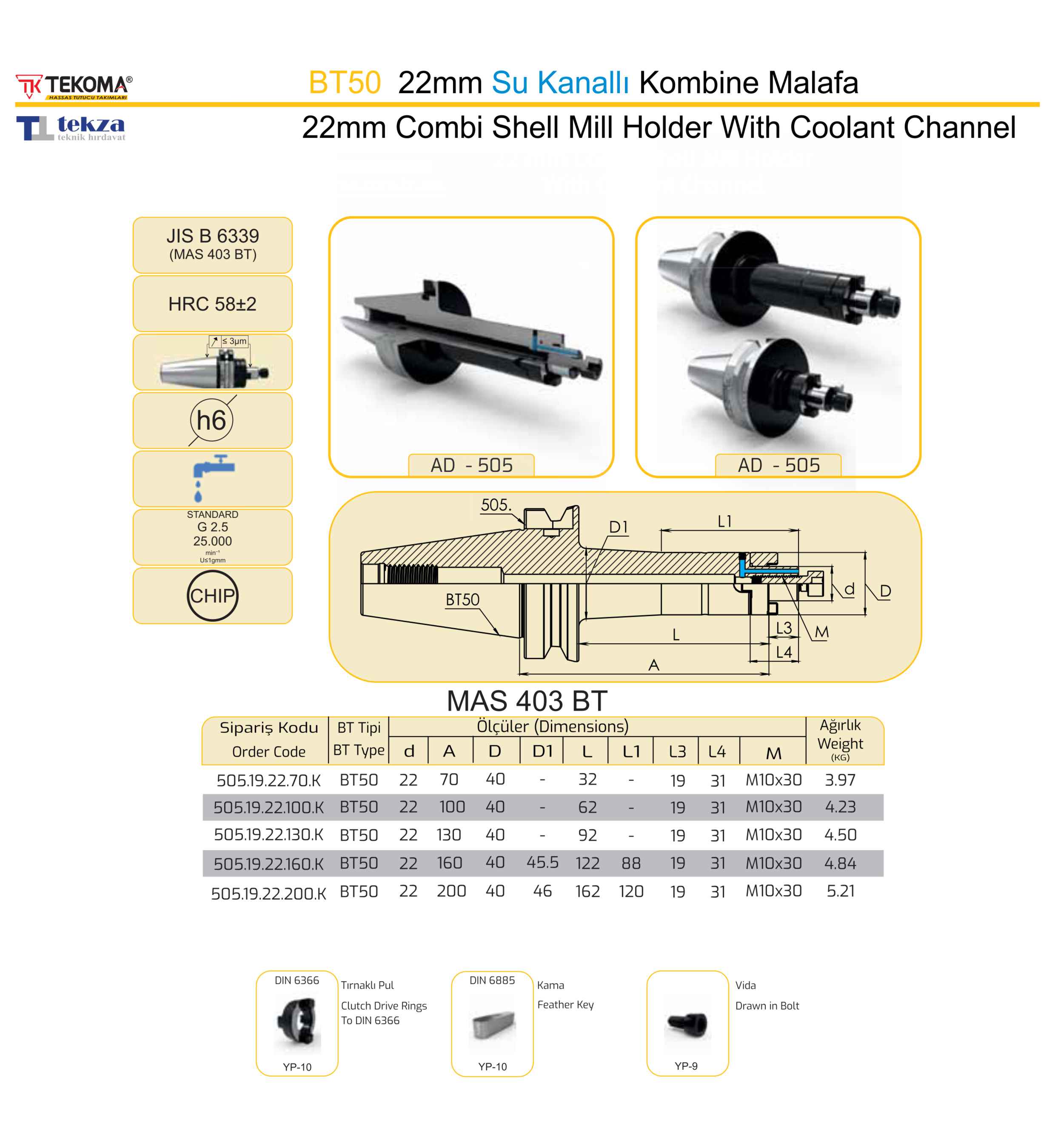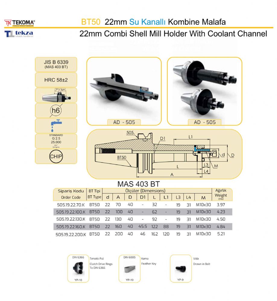 BT50 22mm Su Kanallı Kombine Malafa