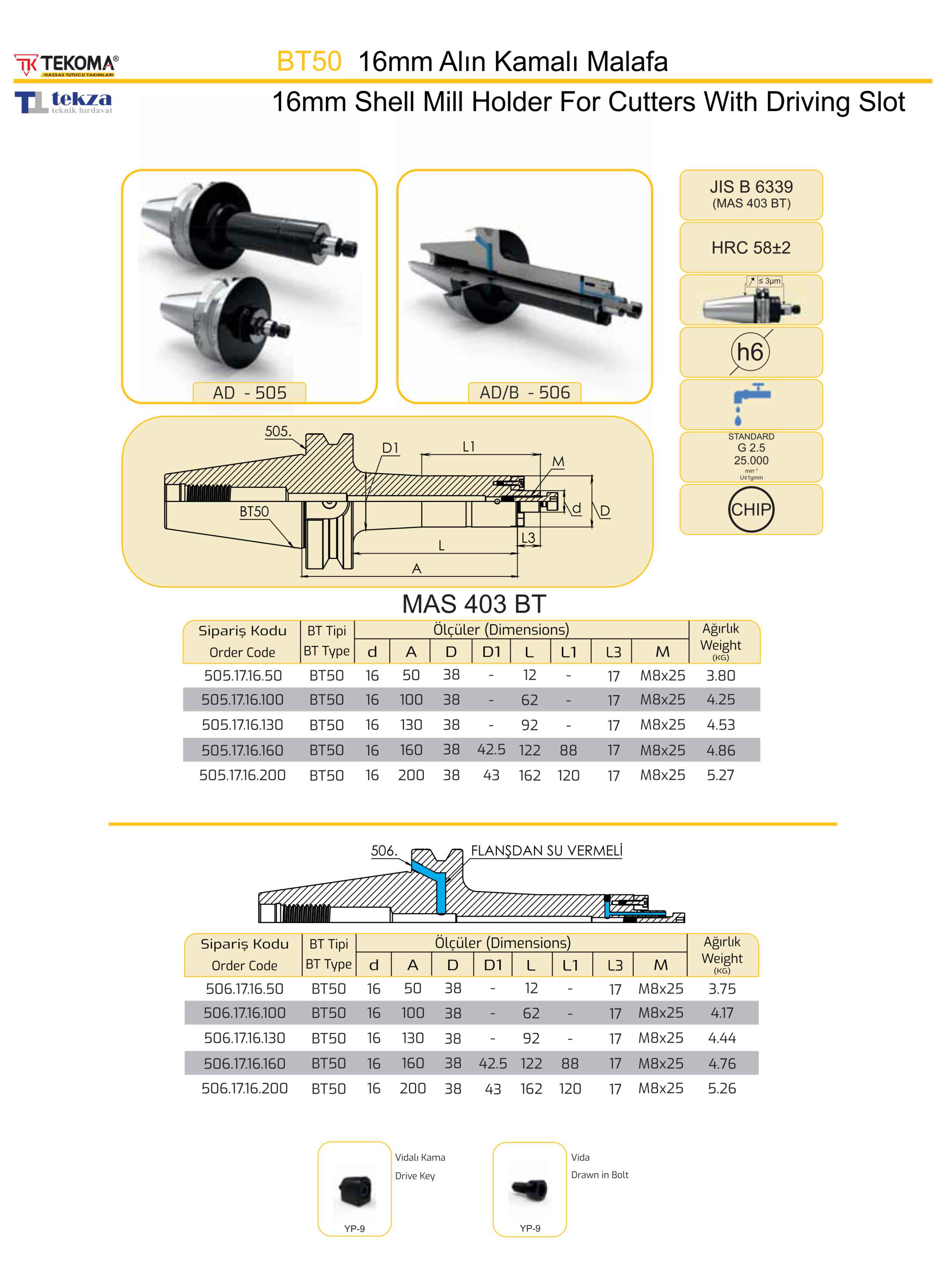 BT40 Su Kanallı Alın Kamalı Malafalar