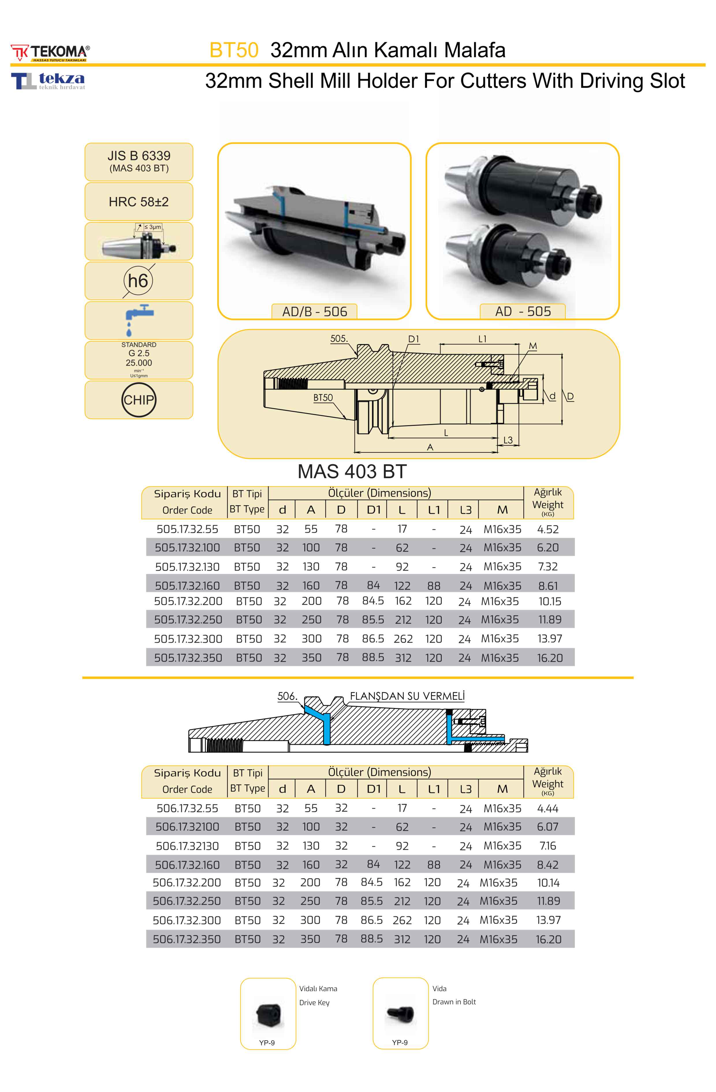 BT40 Su Kanallı Alın Kamalı Malafalar