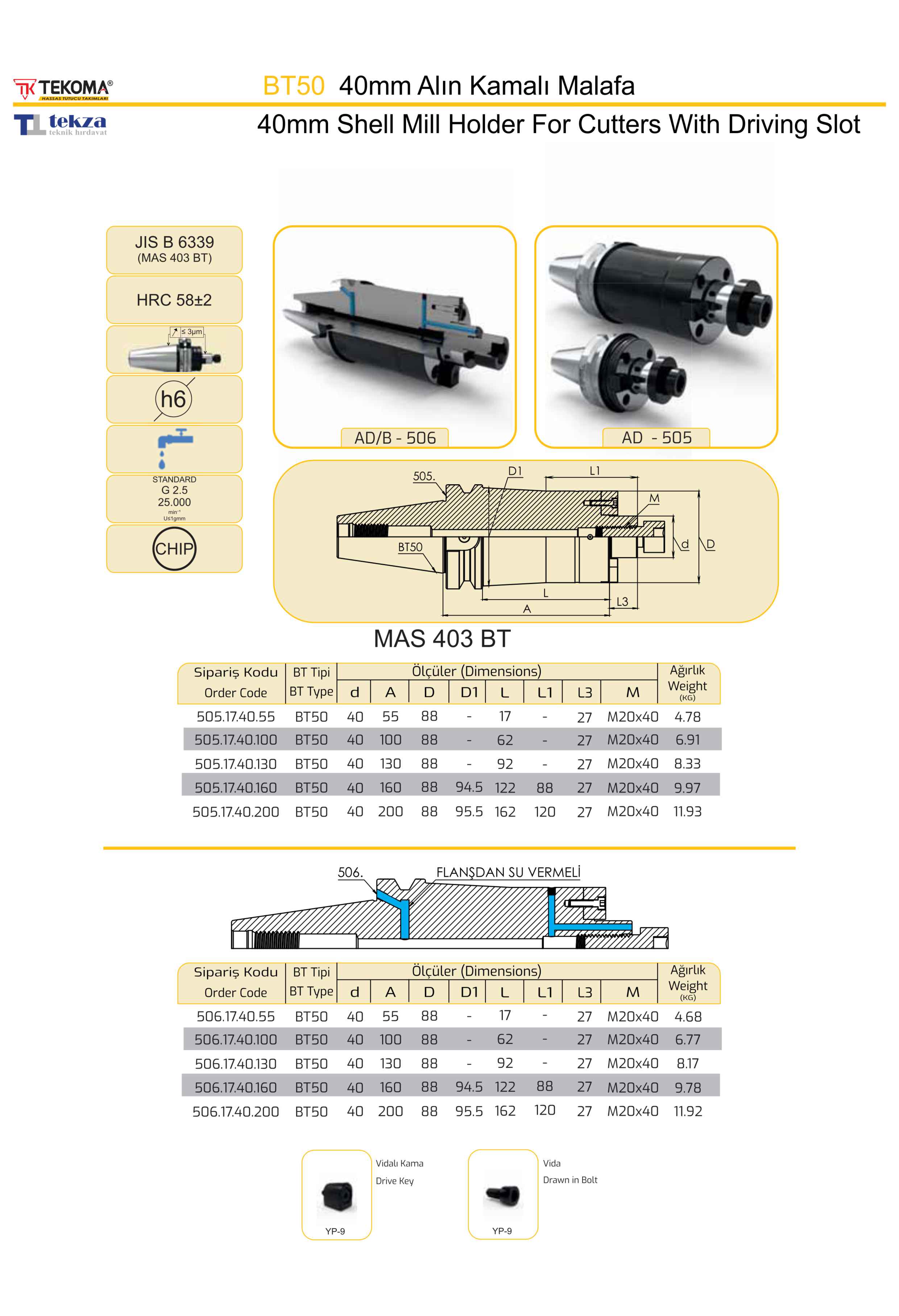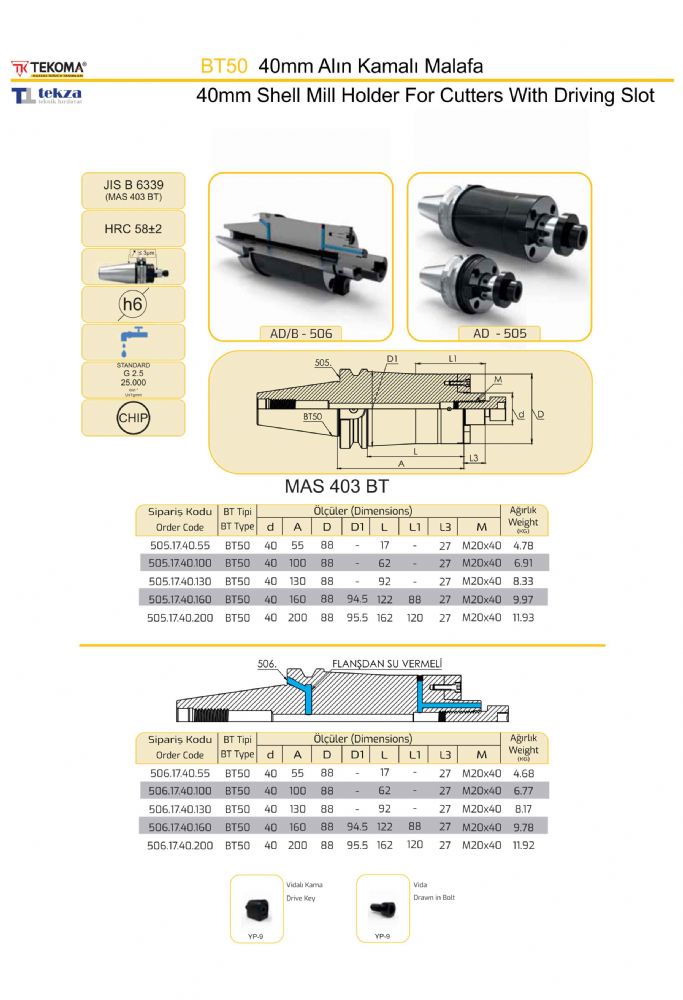 BT40 Su Kanallı Alın Kamalı Malafalar