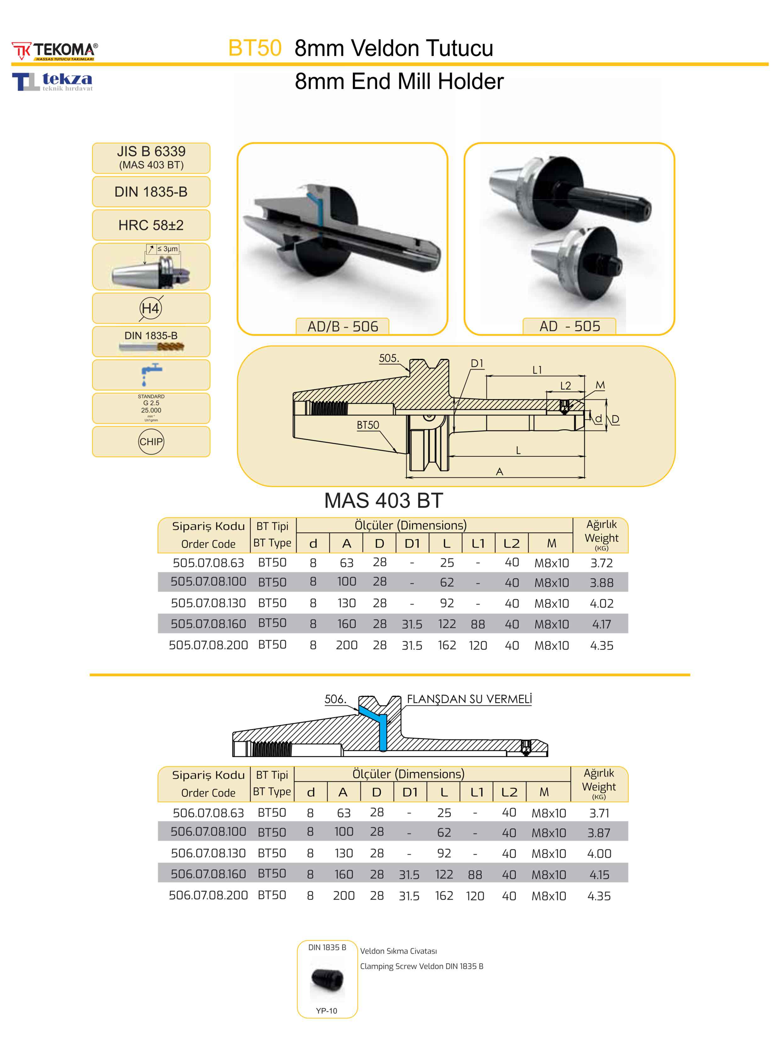 BT40 Su Kanallı Alın Kamalı Malafalar