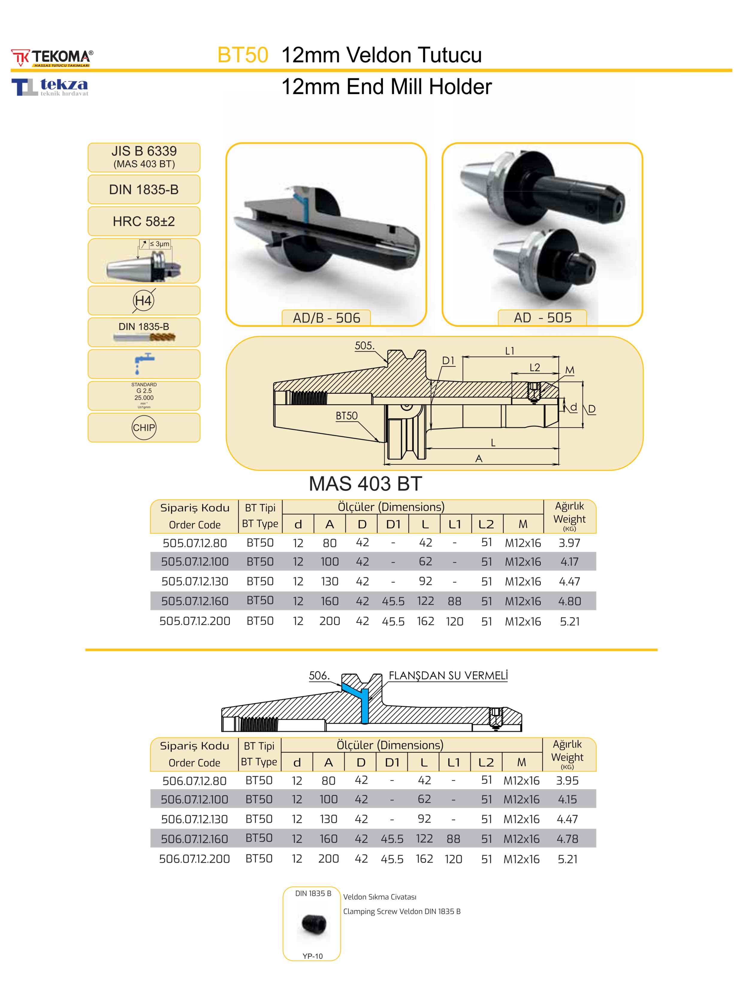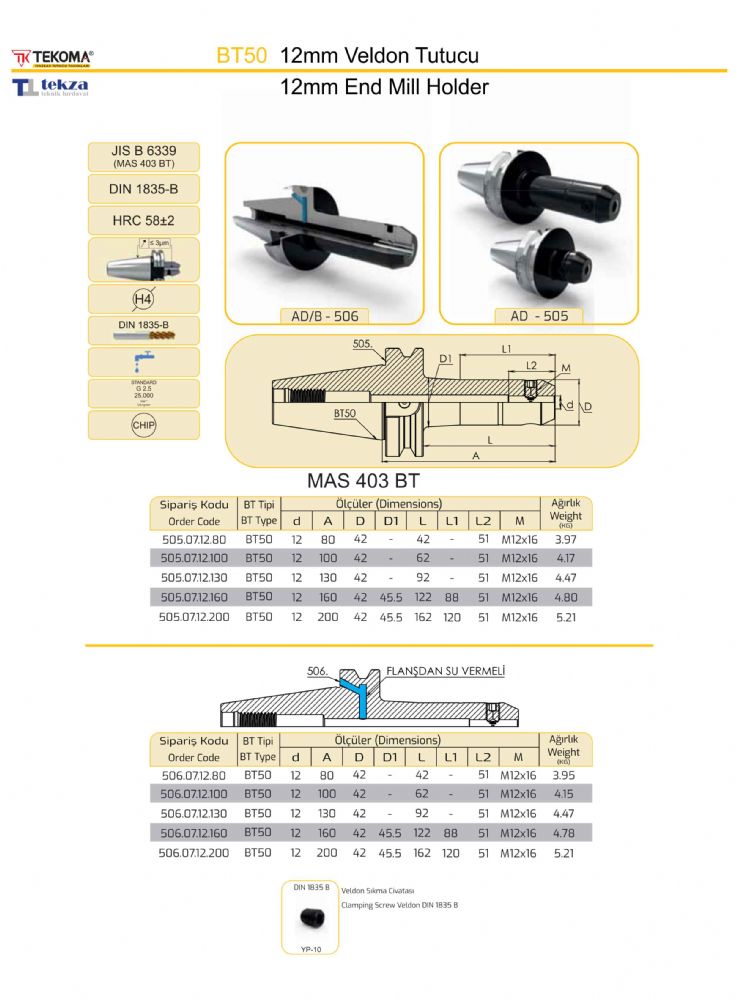 BT40 Su Kanallı Alın Kamalı Malafalar