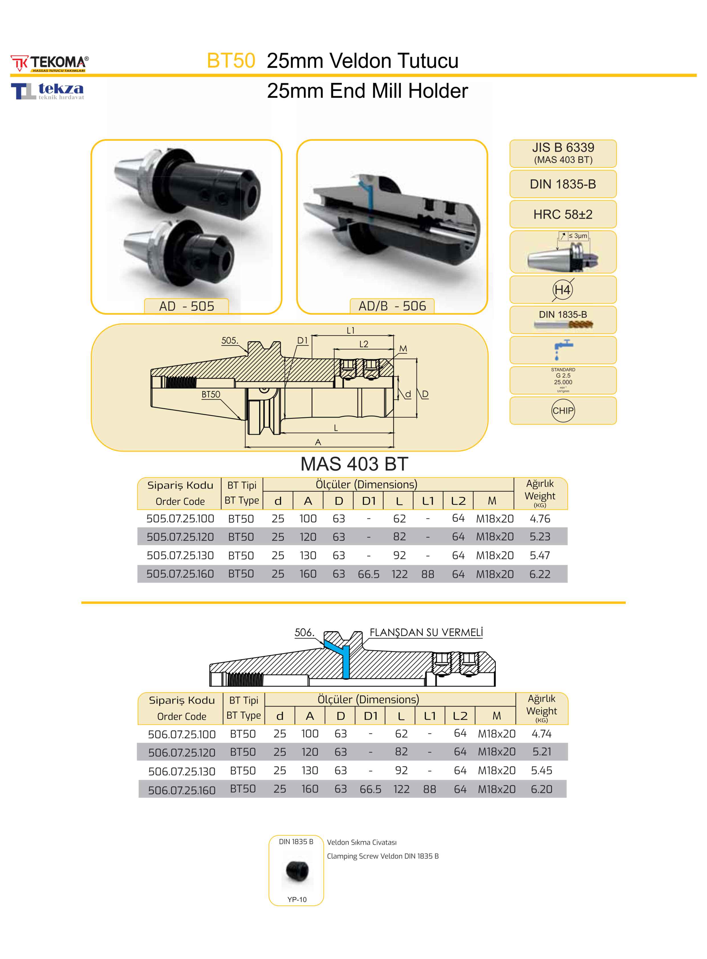 BT40 Su Kanallı Alın Kamalı Malafalar