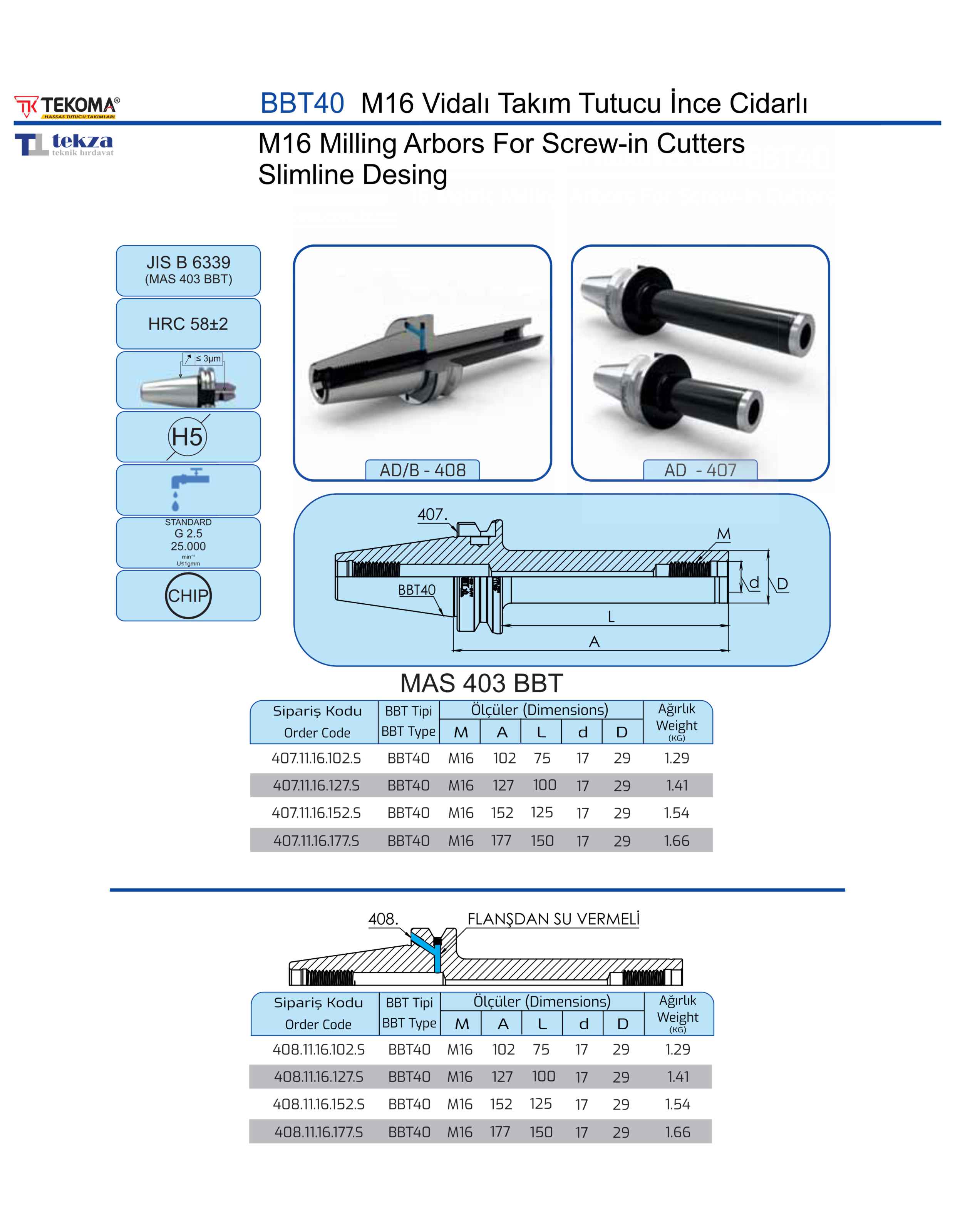 BBT40 M16 Vidalı Takım Tutucu İnce Cidarlı