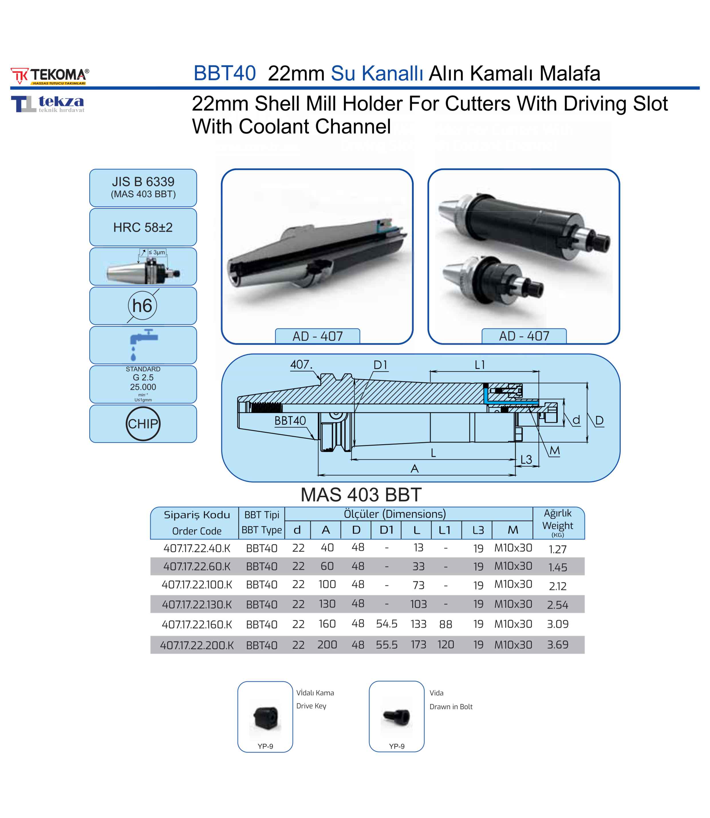BBT40 22mm Su Kanallı Alın Kamalı Malafa