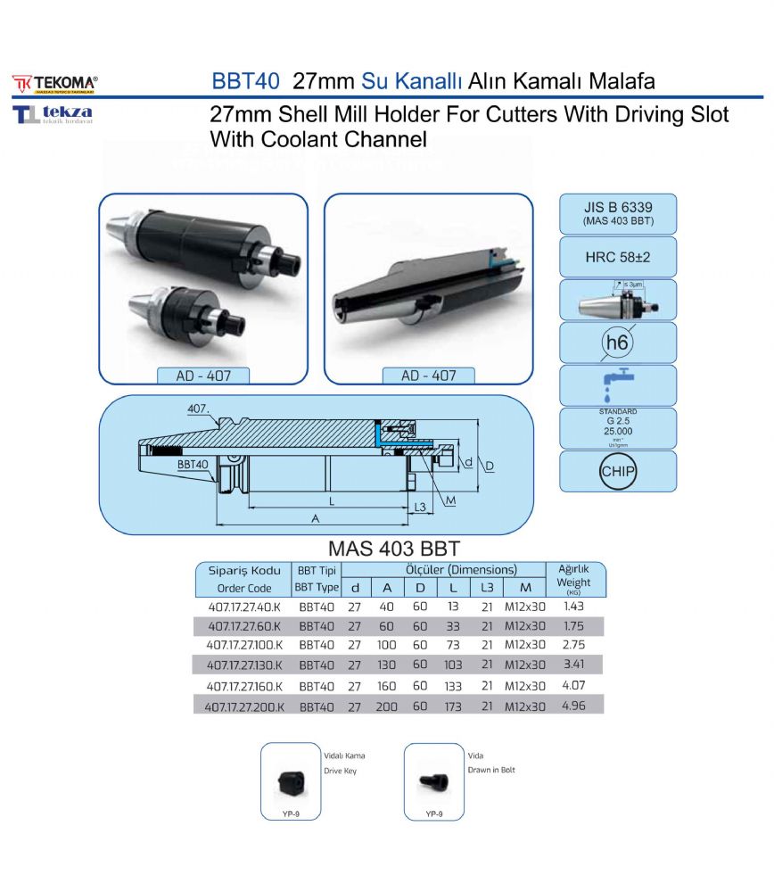 BBT40 27mm Su Kanallı Alın Kamalı Malafa
