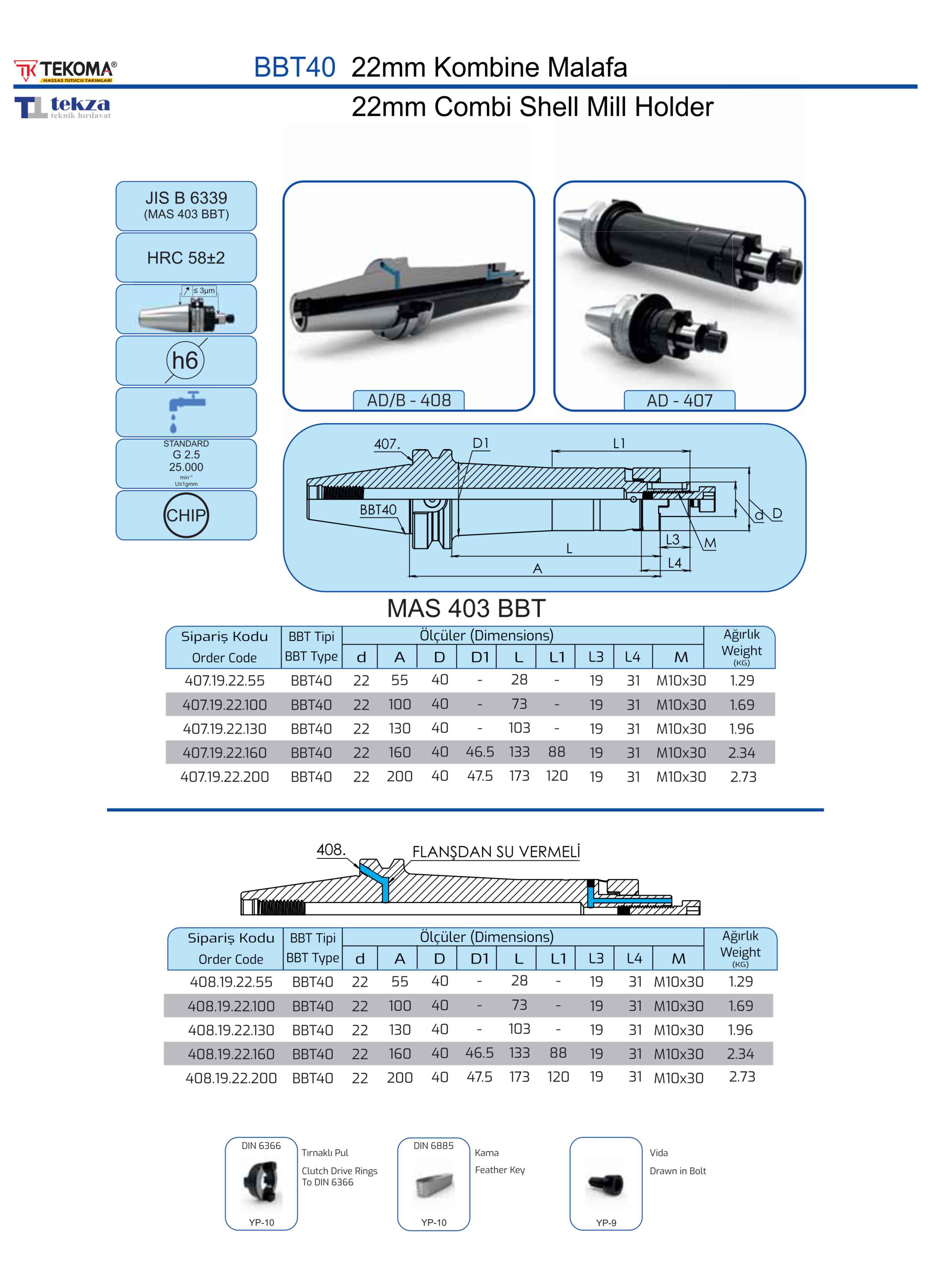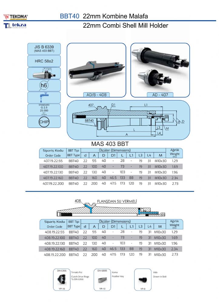 BT40 Su Kanallı Alın Kamalı Malafalar