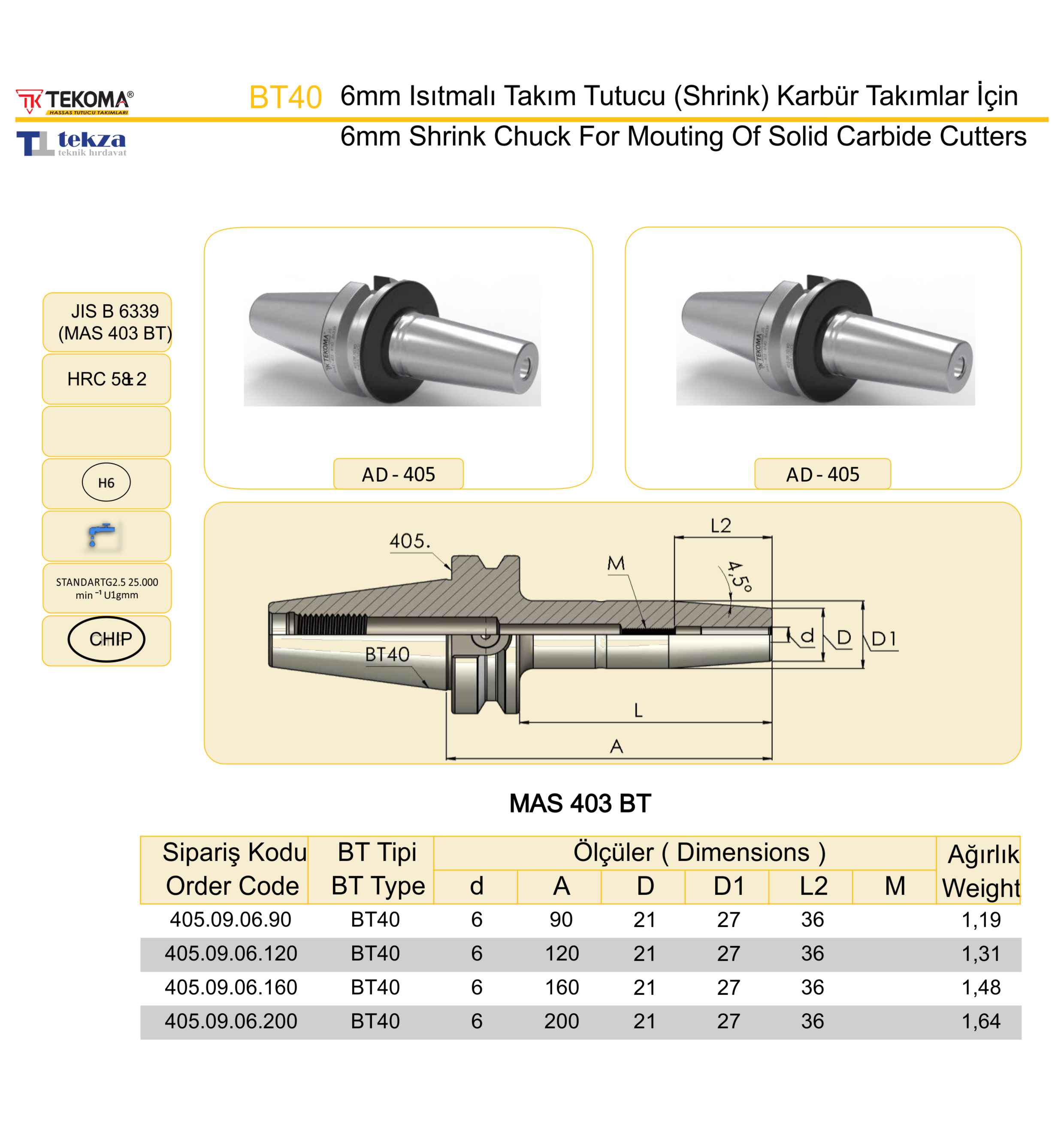BT40 6mm Isıtmalı Takım Tutucu (Shrink) Karbür Takımlar İçin