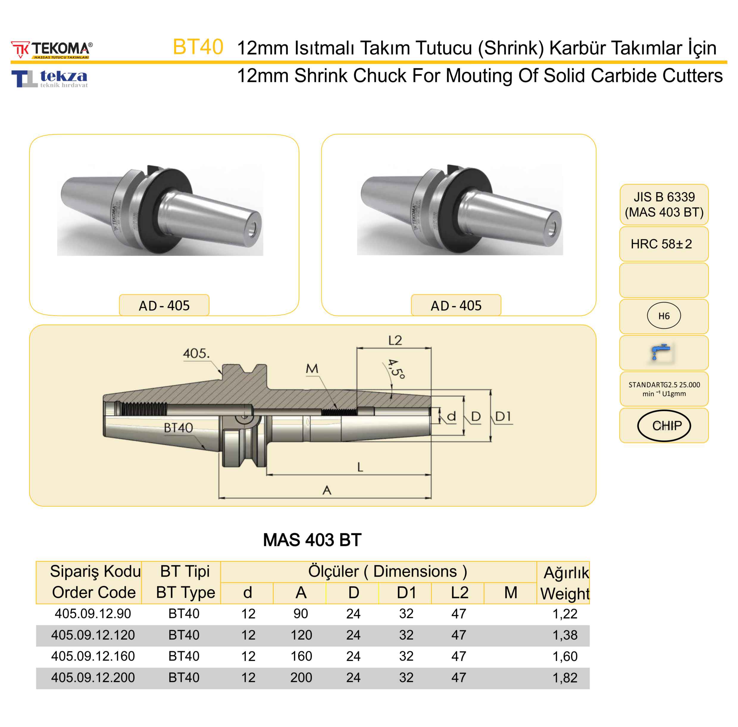 BT40 12mm Isıtmalı Takım Tutucu (Shrink) Karbür Takımlar İçin