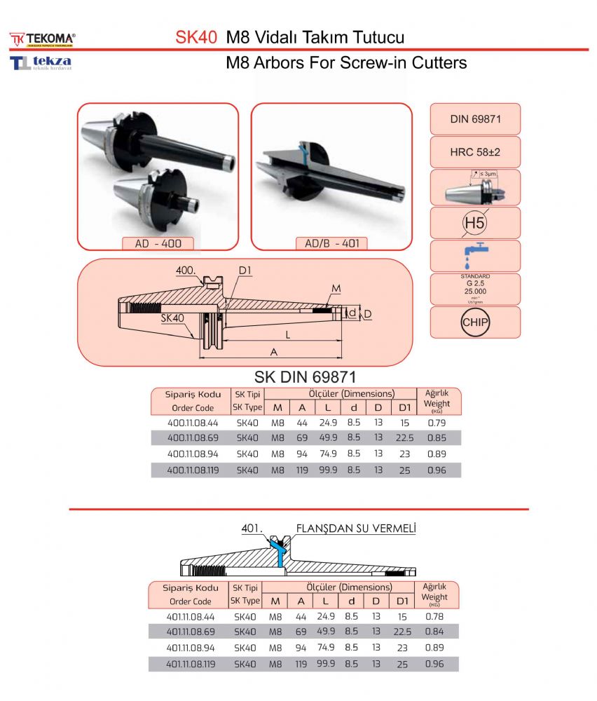 SK40 M8 Vidalı Takım Tutucu
