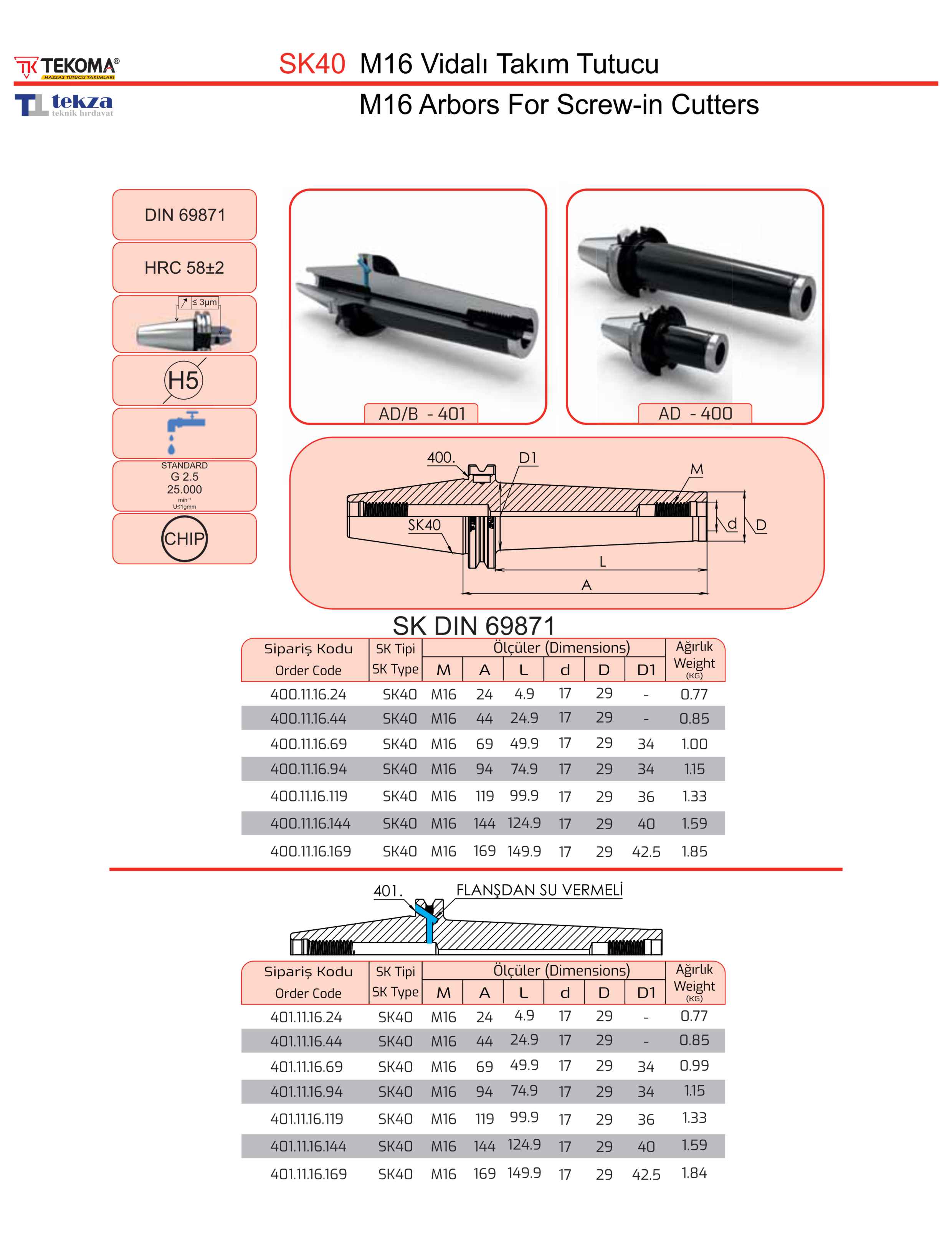 BT40 Su Kanallı Alın Kamalı Malafalar