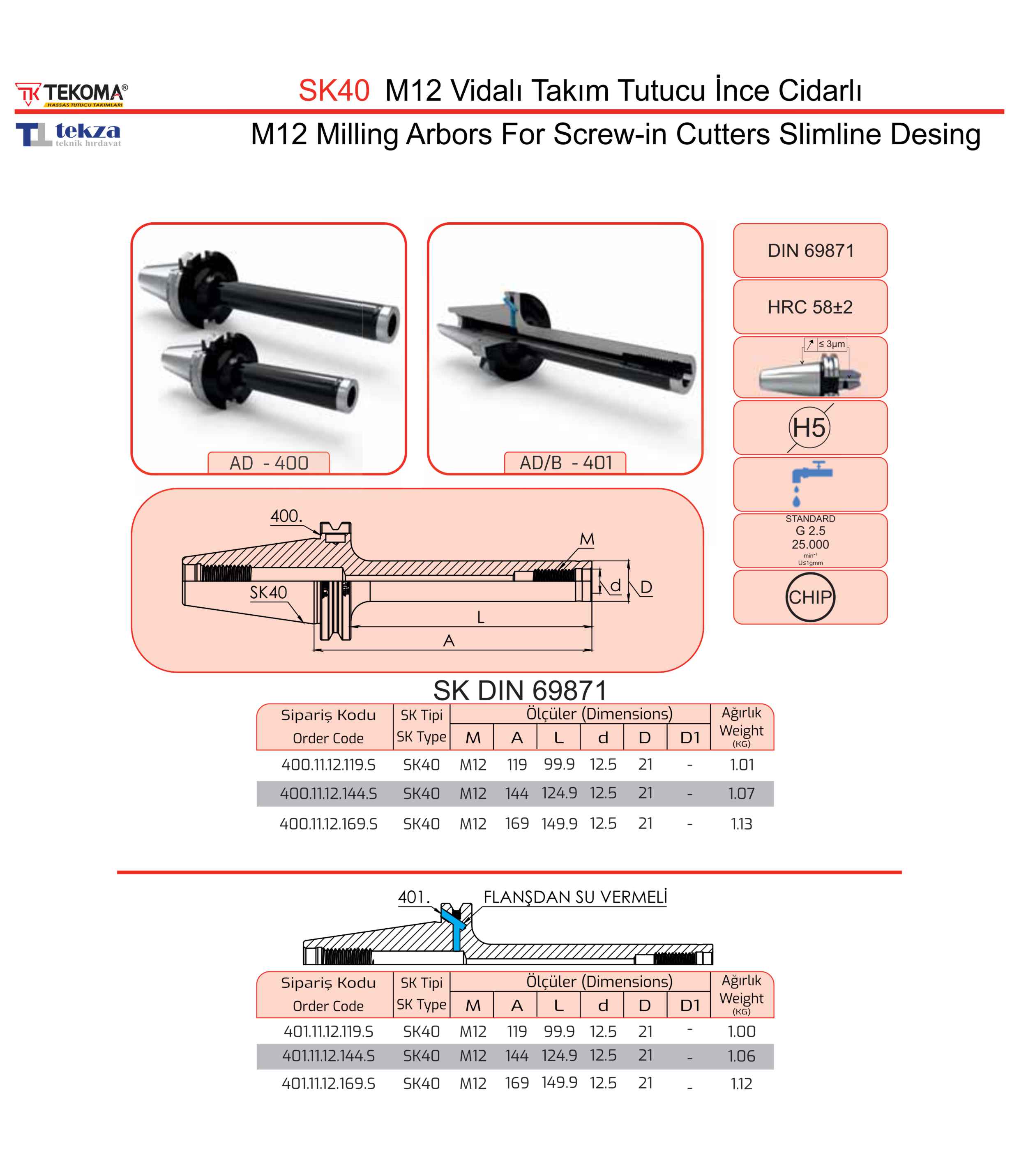 SK40 M12 Vidalı Takım Tutucu İnce Cidarlı