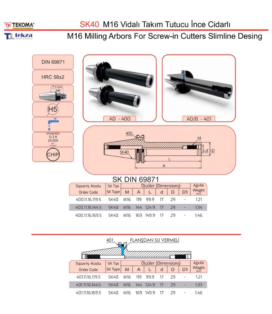 SK40 M16 Vidalı Takım Tutucu İnce Cidarlı
