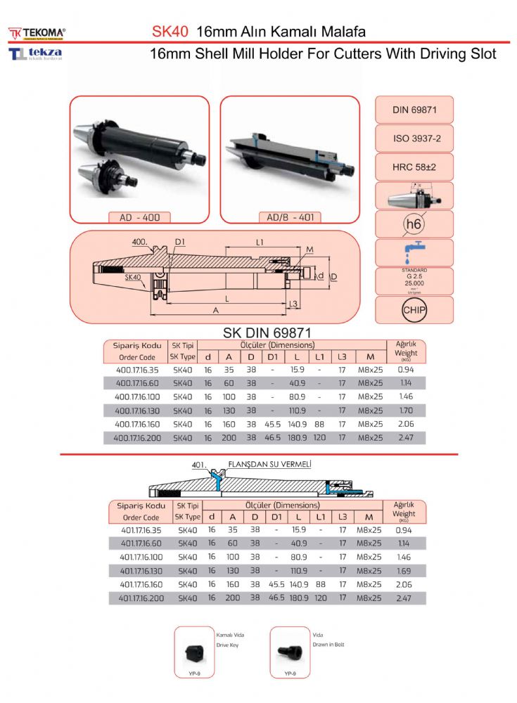 SK40 16mm Alın Kamalı Malafa