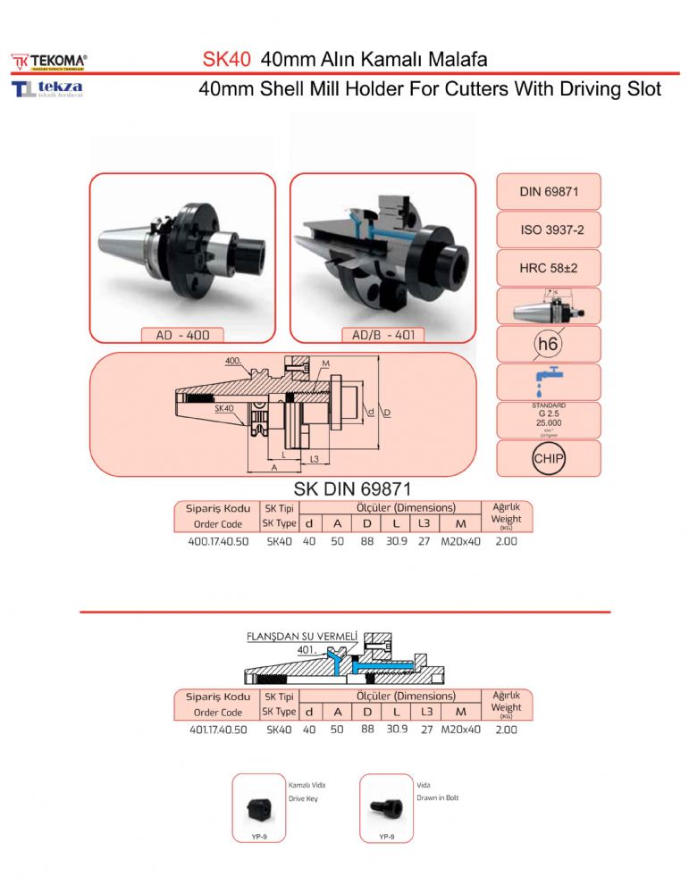 SK40 40mm Alın Kamalı Malafa