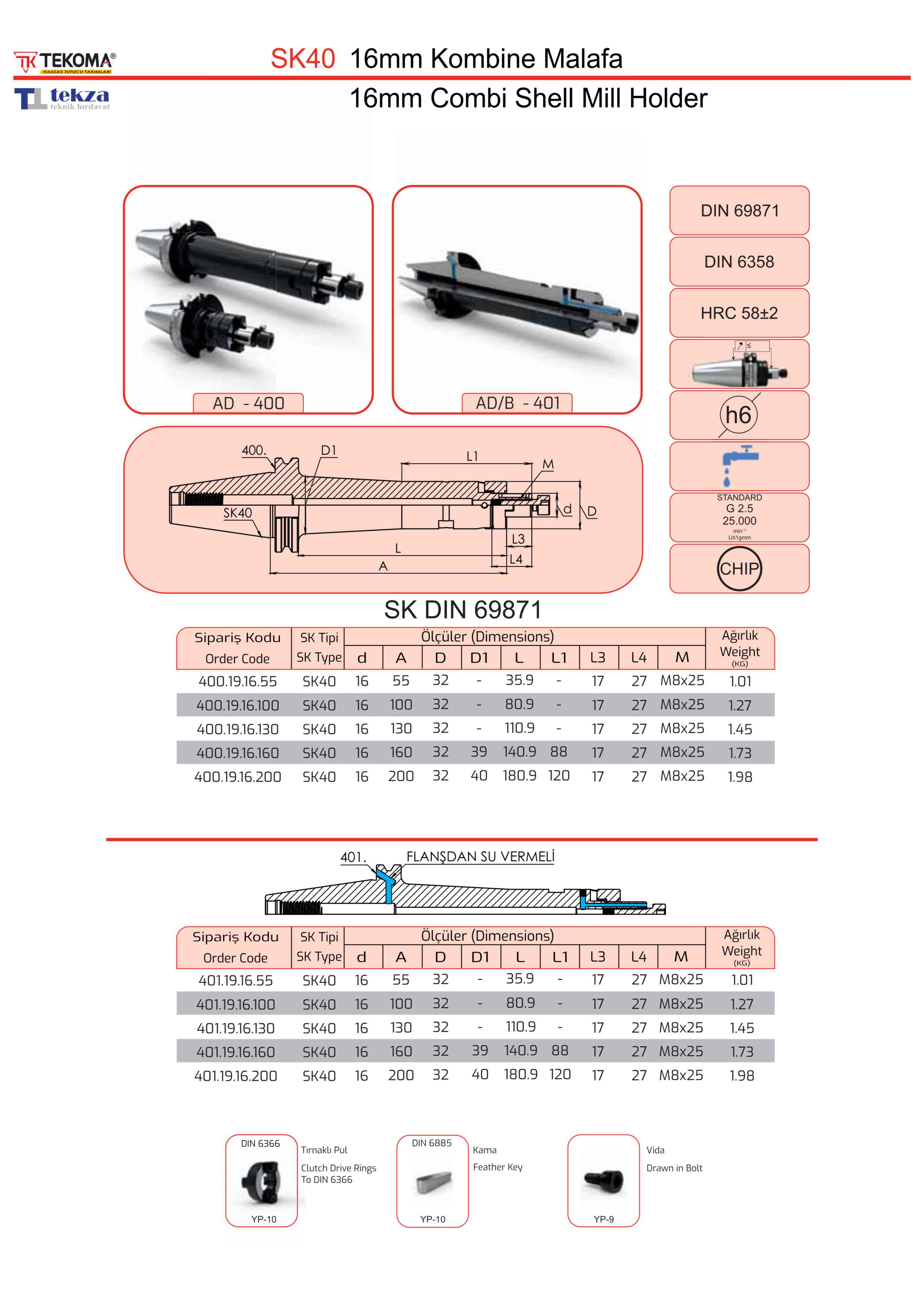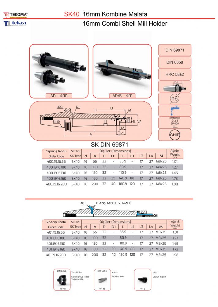 BT40 Su Kanallı Alın Kamalı Malafalar