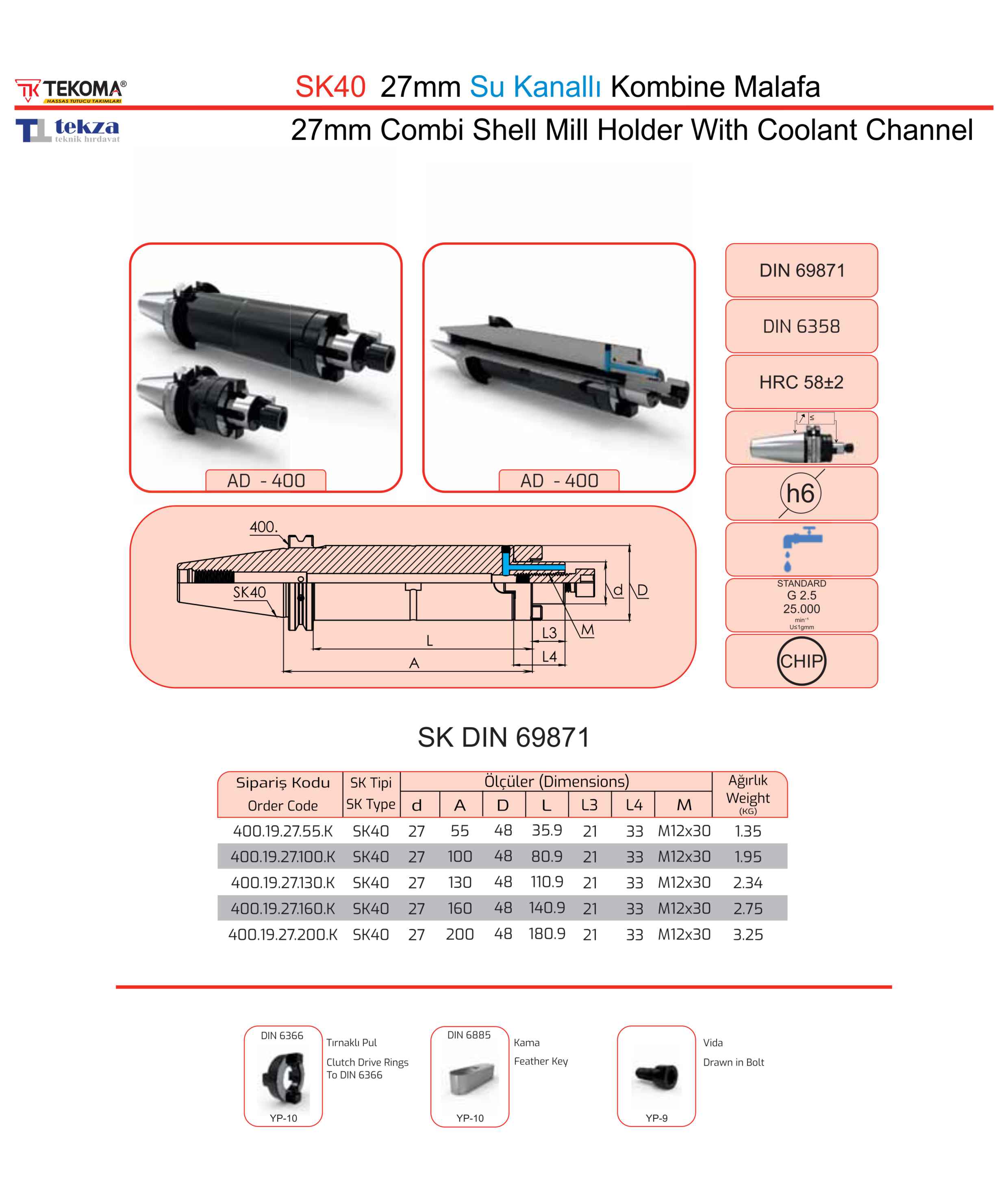 SK40 27mm Su Kanallı Kombine Malafa