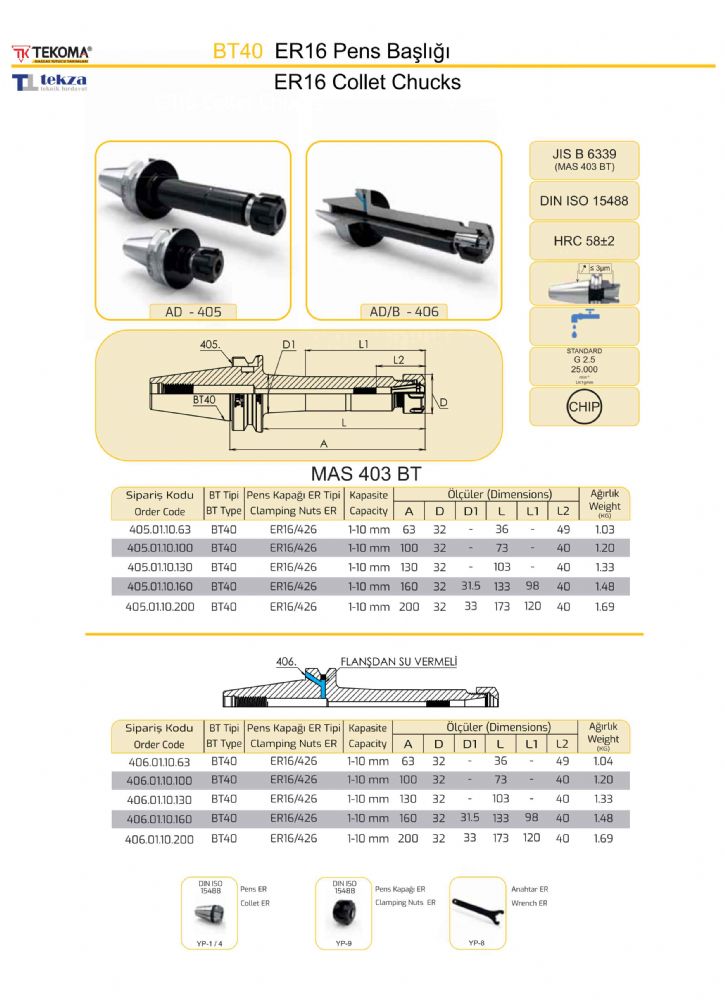 BT40 ER16 Pens Başlığı