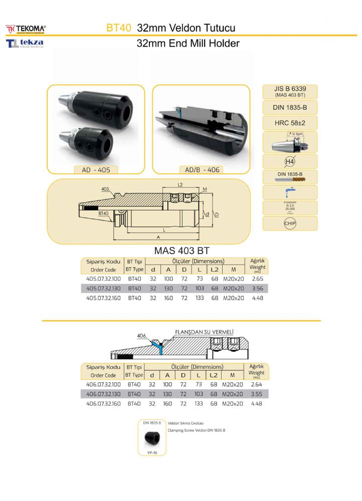 BT40 Su Kanallı Alın Kamalı Malafalar
