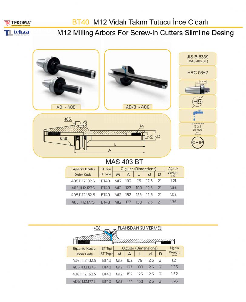 BT40 M12 Vidalı Takım Tutucu İnce Cidarlı