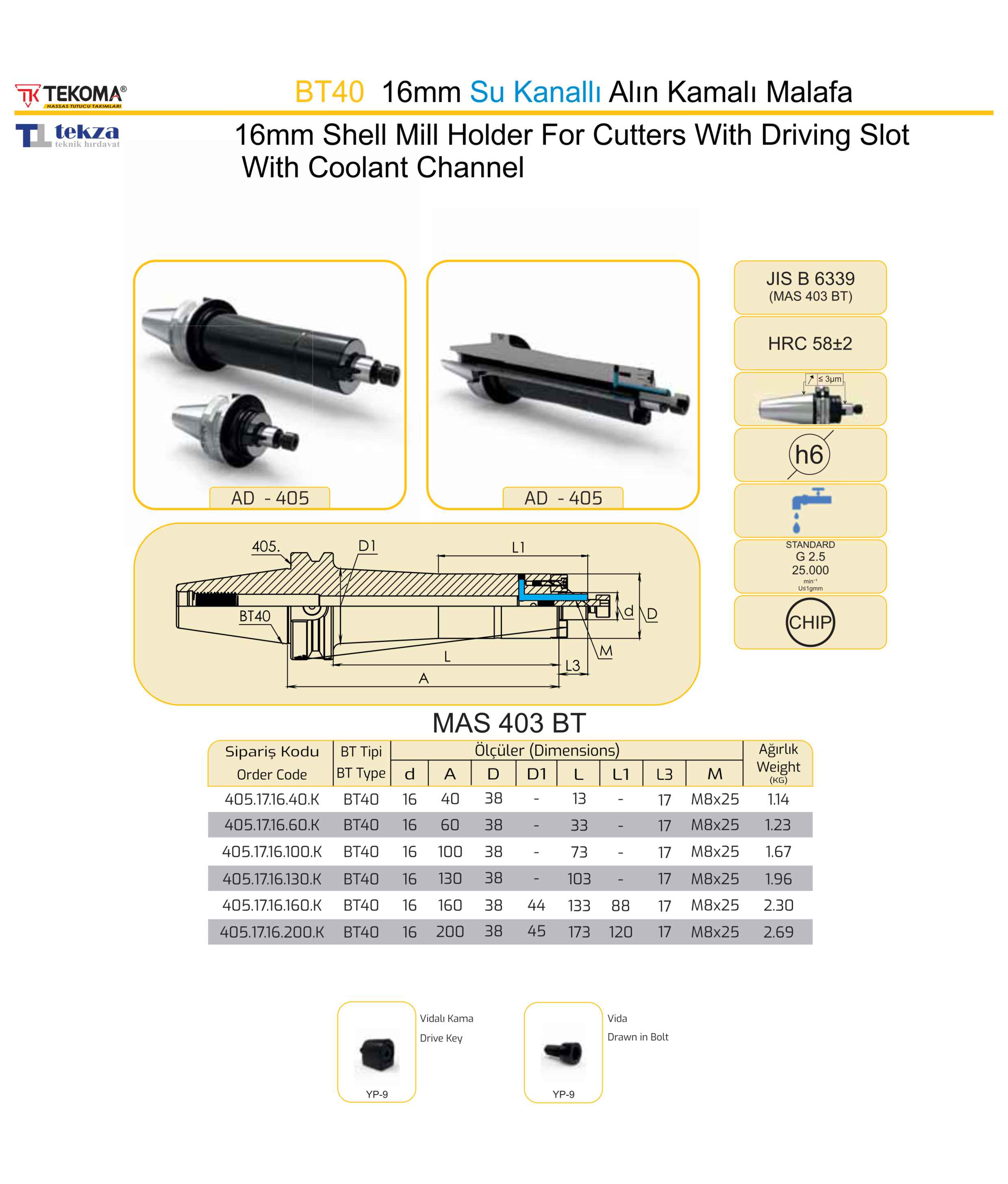 BT40 16mm Su Kanallı Alın Kamalı Malafa