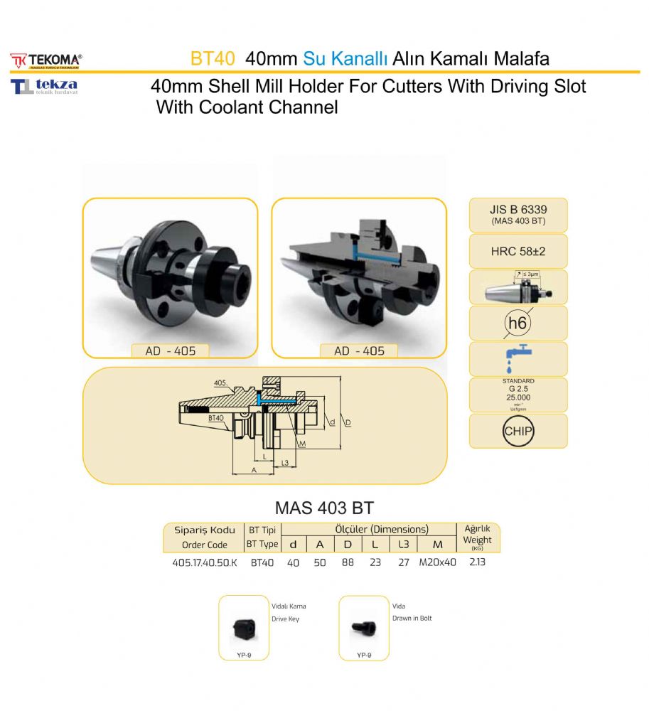 BT40 40mm Su Kanallı Alın Kamalı Malafa