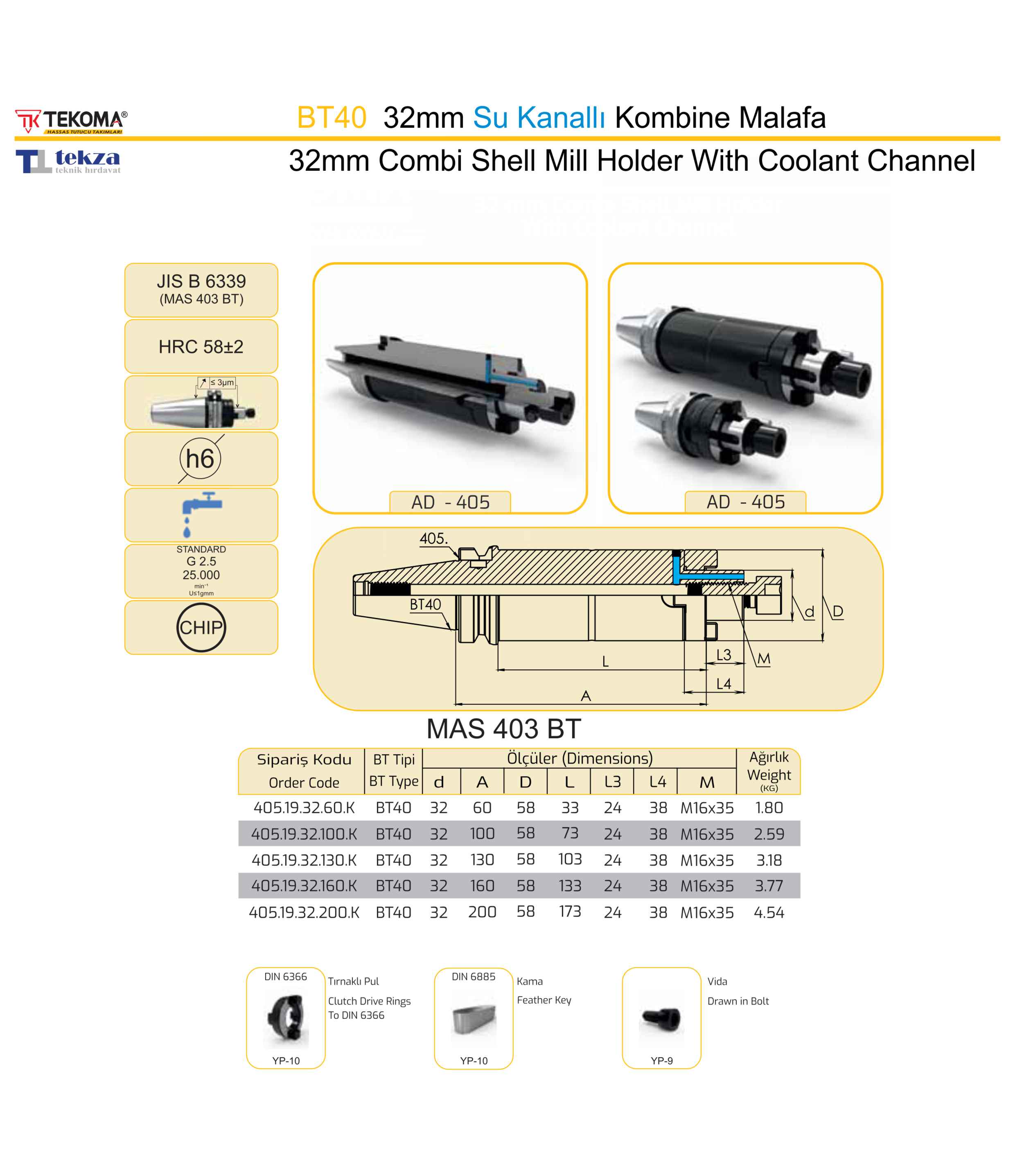 BT40 Su Kanallı Alın Kamalı Malafalar